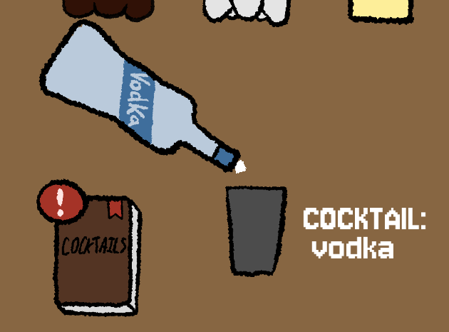 Mi juego implementa el tema porque tienes que hacer combinaciones con las bebidas para descubrir los 10 cócteles. Cuando descubras los 10 cócteles habrás ganado. Las mezclas solo emplean un alcohol y al menos una bebida no alcoholica. Para terminarlas añade hielo. Todas las bebidas llevan hielo.